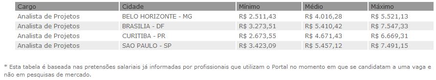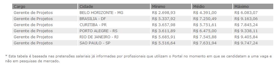 O site de vagas CEVIU (www.ceviu.com.br) disponibiliza um mecânismo onde se pode consultar os valores médios solicitados por gerentes, coordenadores e até mesmo analistas de projetos.